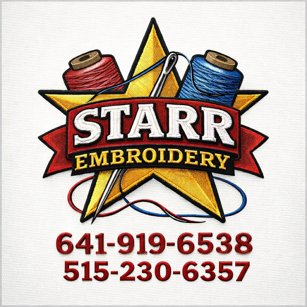 Starr Embroidery provides custom embroidery products for your personal and business needs. Contact us at 515-230-6357 or 641-919-6538